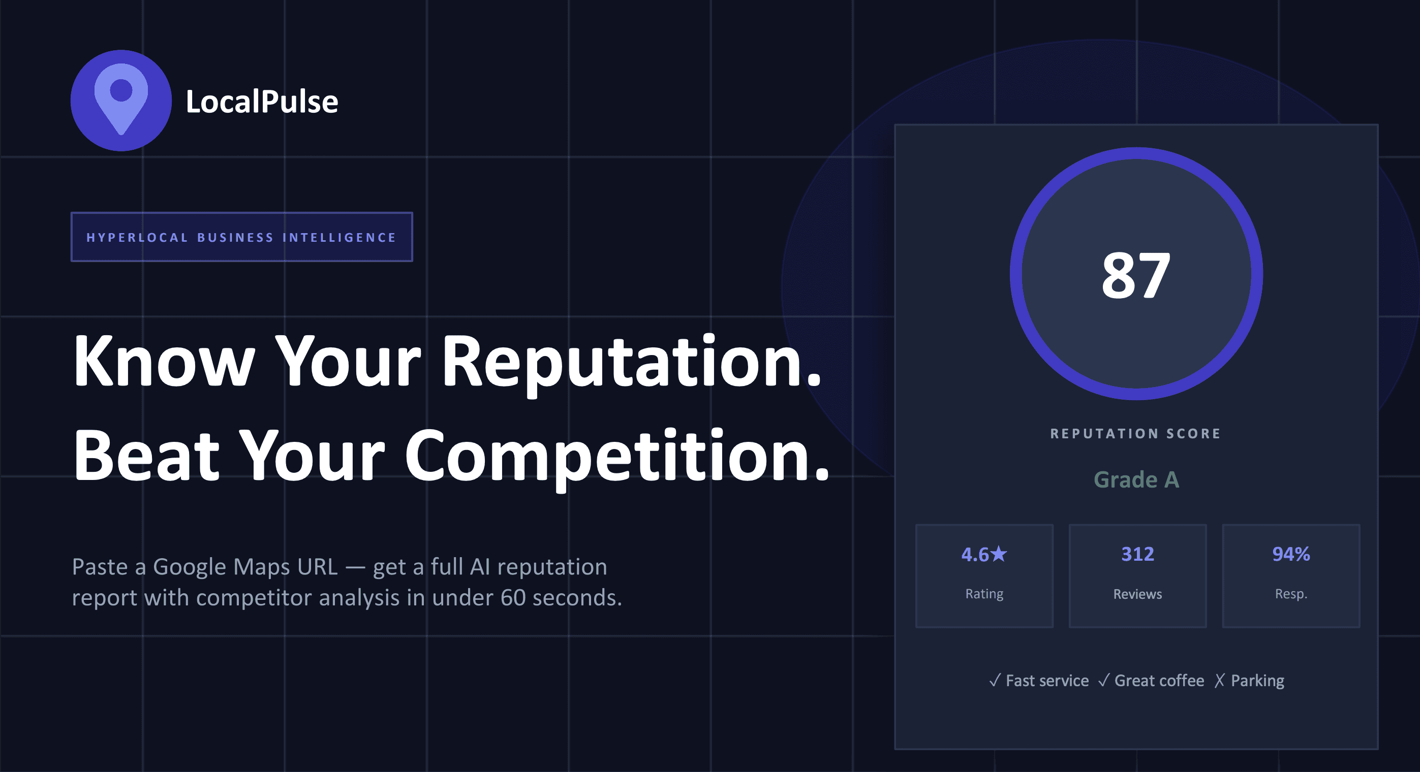 Hyperlocal Business Health Monitor — Paste a Google Maps URL, get an AI-powered reputation report in 60 seconds.